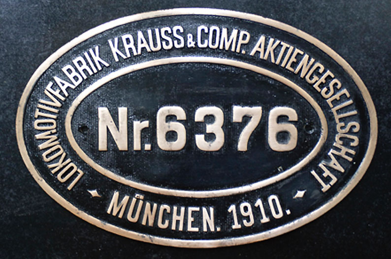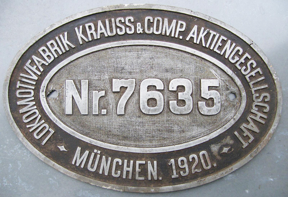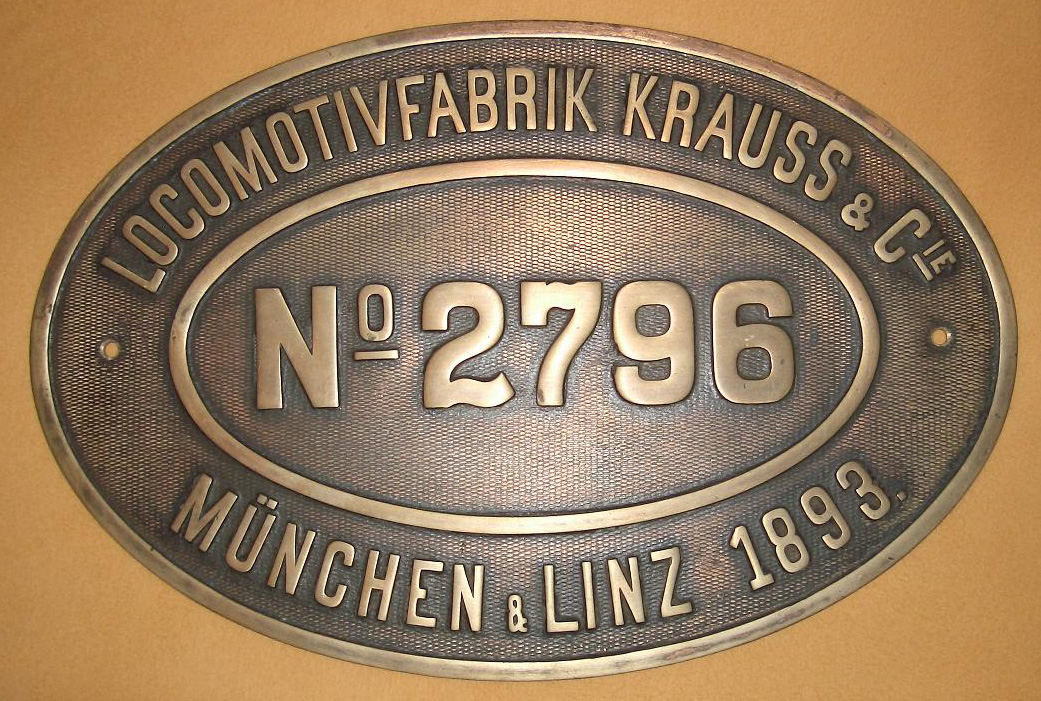 ![]() Länderbahn-Schild: Messingguss, oval Ausführung: Riffelgrund mit Rand. Schild von DRG 74 654 |