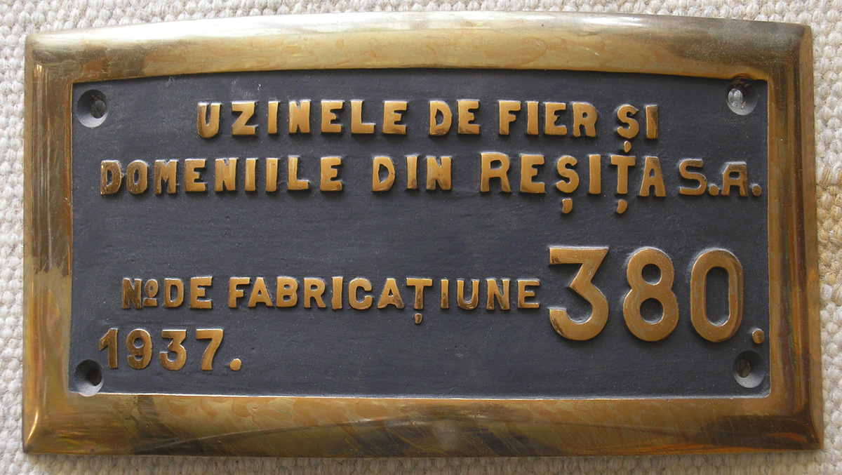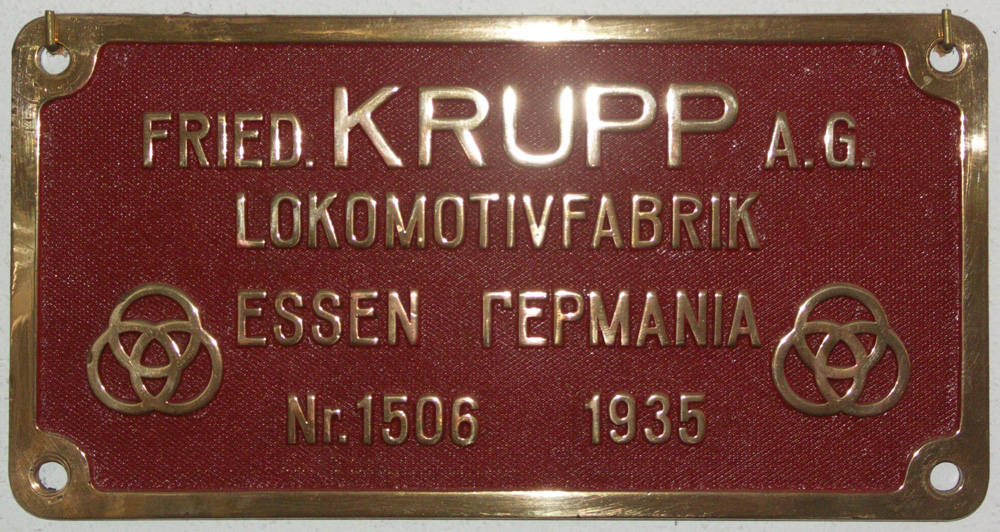 ![]() CFR-Schild: Messingguss, oval Ausführung: Riffelgrund mit Rand. Schild von CFR 50.428, Exportmaschine, G10-Nachbau |