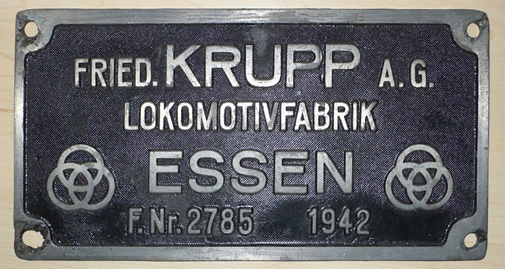 DRG-Schild: Messingguss, Rechteck. Ausführung: Riffelgrund mit Rand. Schild von 85 009 |