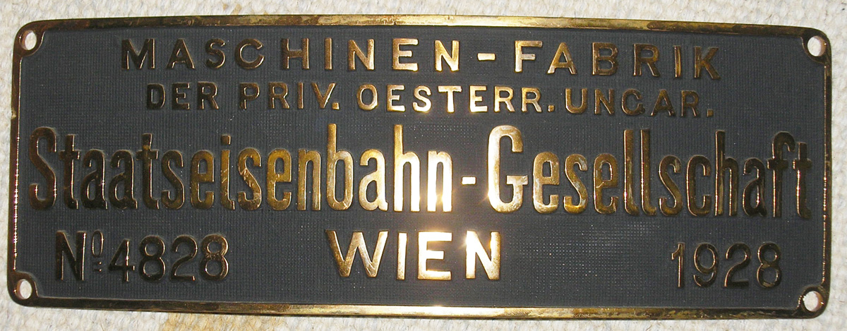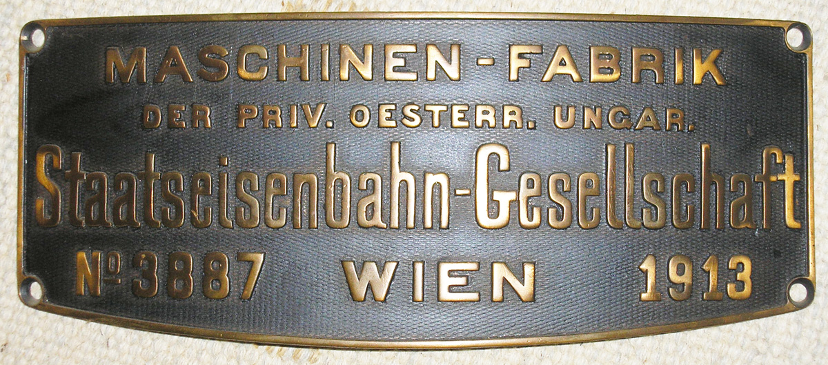 ![]() BBÖ-Schild: Messingguss, rechteckig Ausführung: Riffelgrund mit Rand. Schild von ÖBB 77.270, ex BBÖ 629.105 |
