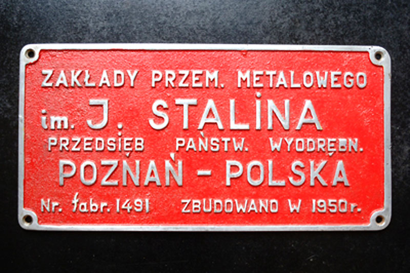 ![]() DRG-Schild: Aluguss, rechteckig Ausführung: Riffelgrund mit Rand. Schild von DRG 03 1053, spätere PKP PM3.8 |