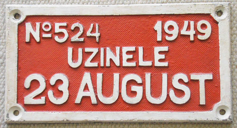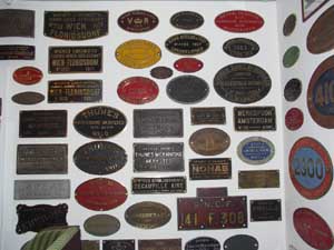 ![]() Bauzuglok-Schild: Messingguss, rechteckig Ausführung: Riffelgrund mit Rand. Schild von 600mm-Feldbahn, 2-Kuppler |