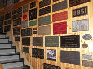 ![]() Länderbahn-Schild: Messingguss, rechteckig Ausführung: Riffelgrund mit Rand. Schild von DSB R936, Exportmaschine, S10-Nachbau |