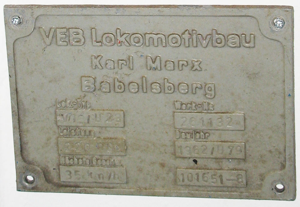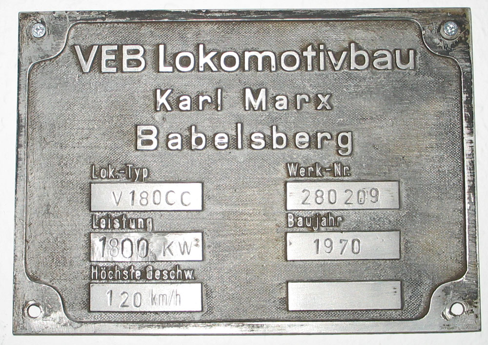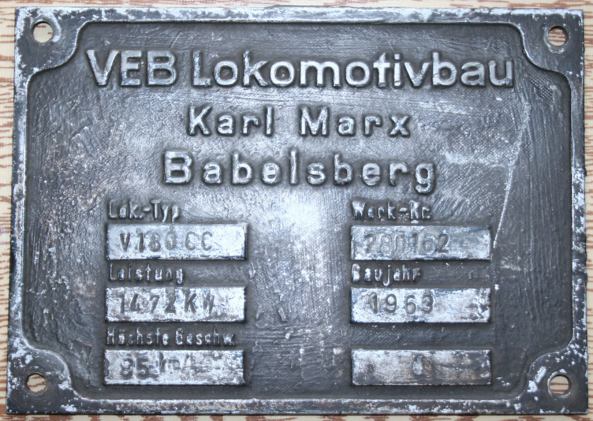 | Schild von einer Lok, möglicherweise DRo 118, spätere DB-AG 228. | |