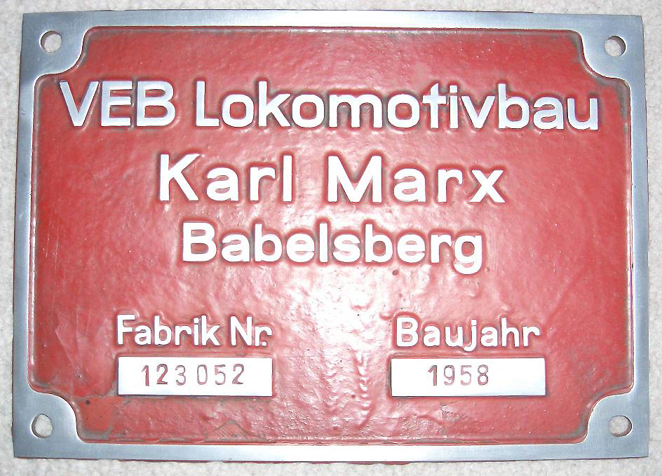 | VEB Karl-Marx Babelsberg (ehemals O&K, dann Maschinenbau u. Bahnbedarf, Potsdam-Babelsberg, schließlich VEB). | |