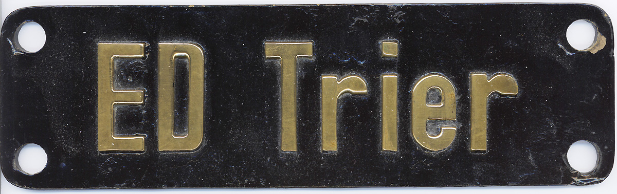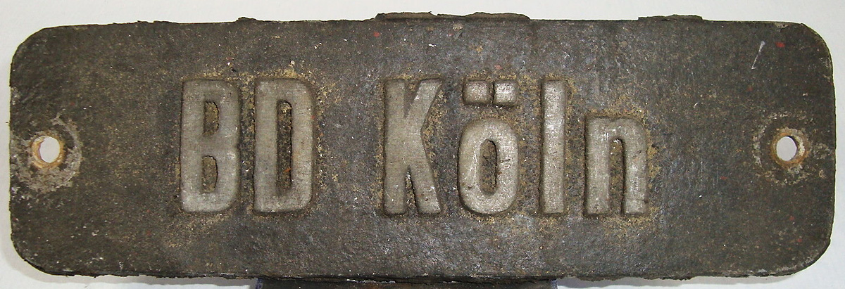Die Beschaffung der Rbd.- und Heimatschilder wurde von den Reichsbahndirektionen und dem Reichsverkehrsministerium Zweigstelle Bayern, in die Wege geleitet, welche dese von privaten Gießereien fertigen ließen und bis ca. 1934 in Rotguss bezogen wurden. (Rg9 gemäß Zeichnung 24.26 für die Direktionen vom 22. Mai 1930) Ebenso erhielt jede Lokomotive 2 Heimatschilder. Sie bezeichnete das für die Unterhaltung zuständige Betriebswerk (Bw). Die Herstellung erfolgte, wie die Rbd. Schilder in Rotguss (Rg9). Zur Ausmusterung anstehende Lokomotiven wurden nicht mehr mit (Heimat)schildern ausgerüstet. Die Hauptverwaltung der DRG ging in den "Eisenbahnabteilungen des Reichsverkehrsministeriums" auf. Laut Erlass vom 15. April 1937 wurde unter anderem die Abkürzung "Rbd." in "RBD" geändert, die Abkürzung "Deutsche Reichsbahn" nach Erlass vom 04. Februar 1938 mir "DRB" abgekürzt. Bei den im Jahre 1938 eingeführten Schildern wurde die Reichsbahn-Direktion als "RBD" abgekürzt. Nach der Verordnung über unedle Metalle vom 26. März und 28. April 1934 kam es zur Bezeichnung "Heimstoff"-Schilder, unter der zusätzlichen Verwendung von Kupfer, Nickel, Zinn und Quecksilber. Je nach Hersteller und damit oft regionalbedingt, gab es zum Teil deutliche Unterschiede in Schriftbild und Riffelgrund. Aus der Rbd. Saarbrücken sind Heimatschilder bekannt, deren Ziffern auf eine Eisenplatte genietet sind. Möglicherweise wurden die Maschinen bestückt, die durch die Eingliederung des Saarlandes wieder zur Deutschen Reichsbahn kamen. Hergestellt wurden die Direktions- und Heimatschilder meist bei der Firma Lücker in Berlin. Vor den Ortsnamen kam die Abkürzung "Bw". (Selten "Bw.") Manchen Schildern wurde die Materialbezeichnung nicht eingegossen, sondern rückseitig eingestempelt. Bereits 1947 entstanden neue Zeichnungen für Direktions- und Heimatschilder (Fld 24.32 Bl. 1 und 2). Als Schirftart wurde fette Engschrift nach DIN 1451 vorgeschrieben. Die Direktionen wurden dann mit "Eisenbahndirektion" (ED) benannt. Mit der Einführung "Bundesbahn" wurde die Bezeichnung zu "Bundesbahndirektion" (BD) geändert. Die Direktions- und Heimatschilder der Deutschen Bundesbahn (DB) wurden von verschiedenen Gießereien beschafft. Die Werkstoffkennzeichnung musste rückseitig vorhanden sein. Meist prägte der Hersteller noch sein Firmenlogo ein. Aus Kostengründen wurden gegen Ende der Dampfzeit nur noch lackierte Blechschilder angebracht. Die Direktions- und Heimatschilder der Deutschen Reichsbahn (DRo) wurden generell erst Anfang 1970 im Zusammenhang mit den neuen EDV-Nummernschildern eingeführt. Gelegentlich bekamen Maschinen der Rbd Halle schon vor diesem Zeitraum Direktions- und Heimatschilder. Für die E-Loks gab es die speziellen "Schmuckschilder" mit Rand. Die Schilder der DRo zeichneten sich durch eine extreme Materialstärke aus, welche dem Leistungsgedanken der sozialistischen Planwirtschaft zugute kam (Gewicht). Gießerei war die "Gebrüder Lücker Nachfahren".