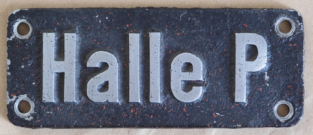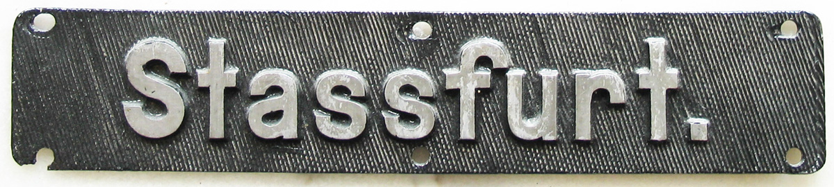 vereinzelt dicke Buchstaben - Guss Alu Riffelgrund mit Rand (E-Lokschilder) - dicke Schilder - Schriftform breit und schmal - Schilder mit Bestellmerkmalen - Stempelung mit Loknummer |