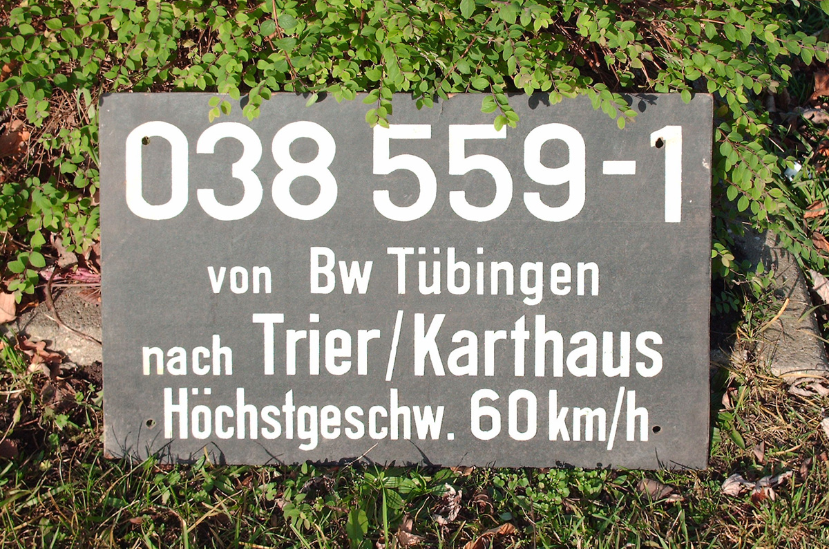 | Schild für die Überführung der Lokomotive 038 559-1. | |