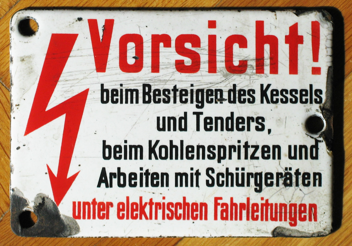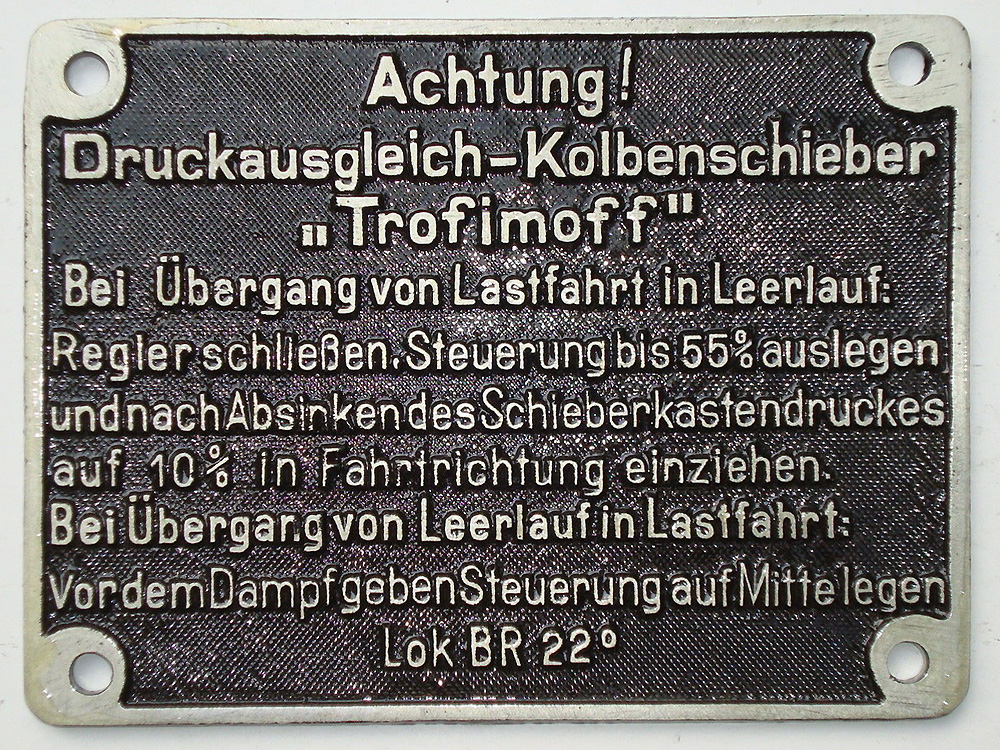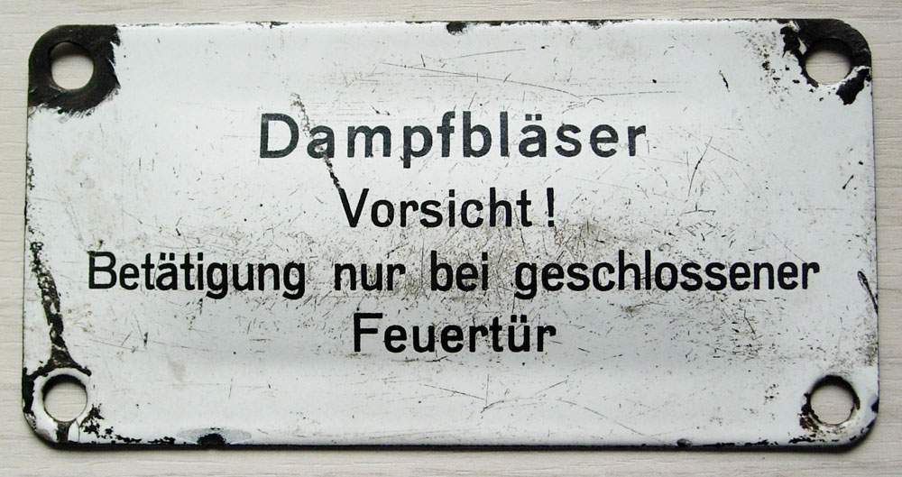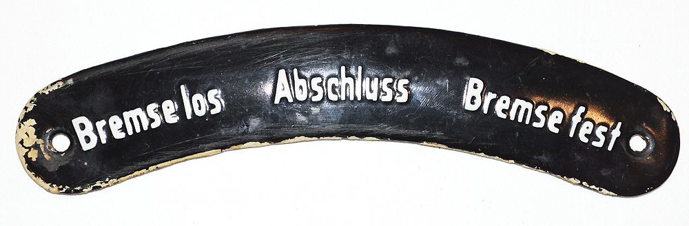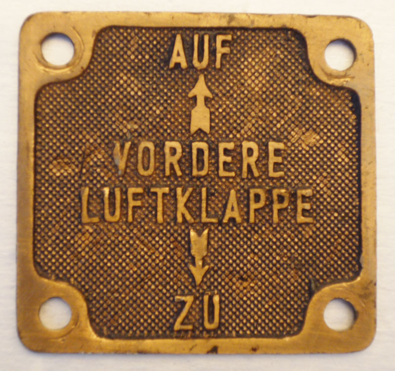 | Zusatzschild im Führerstand der DB-Dampflokomotive BR10. | |