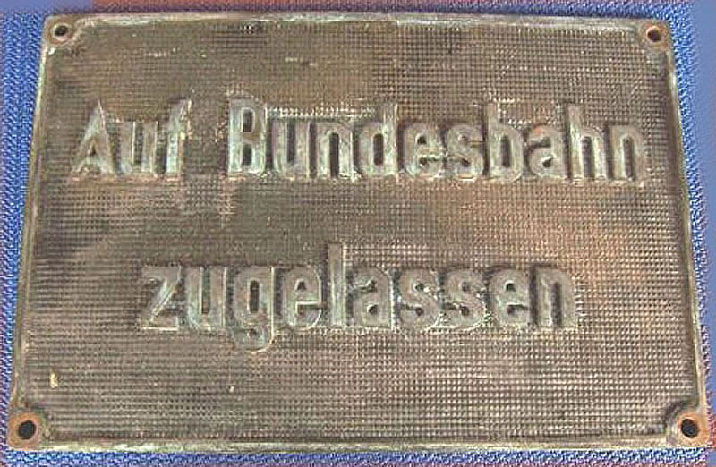 | "Auf Bundesbahn zugelassen", von einer Zechenlokomotive. | |