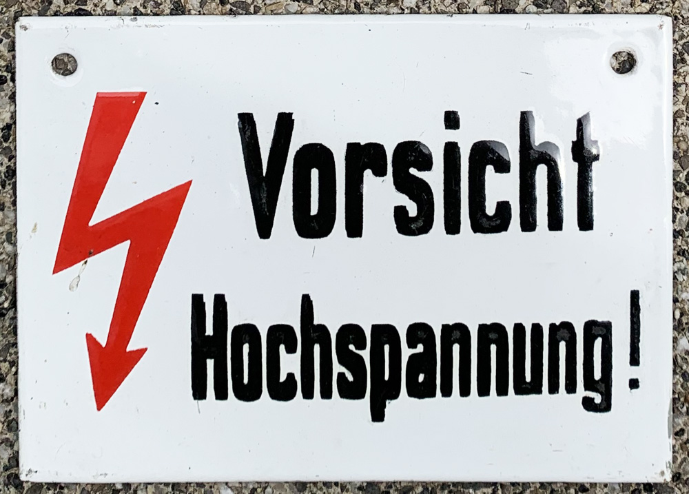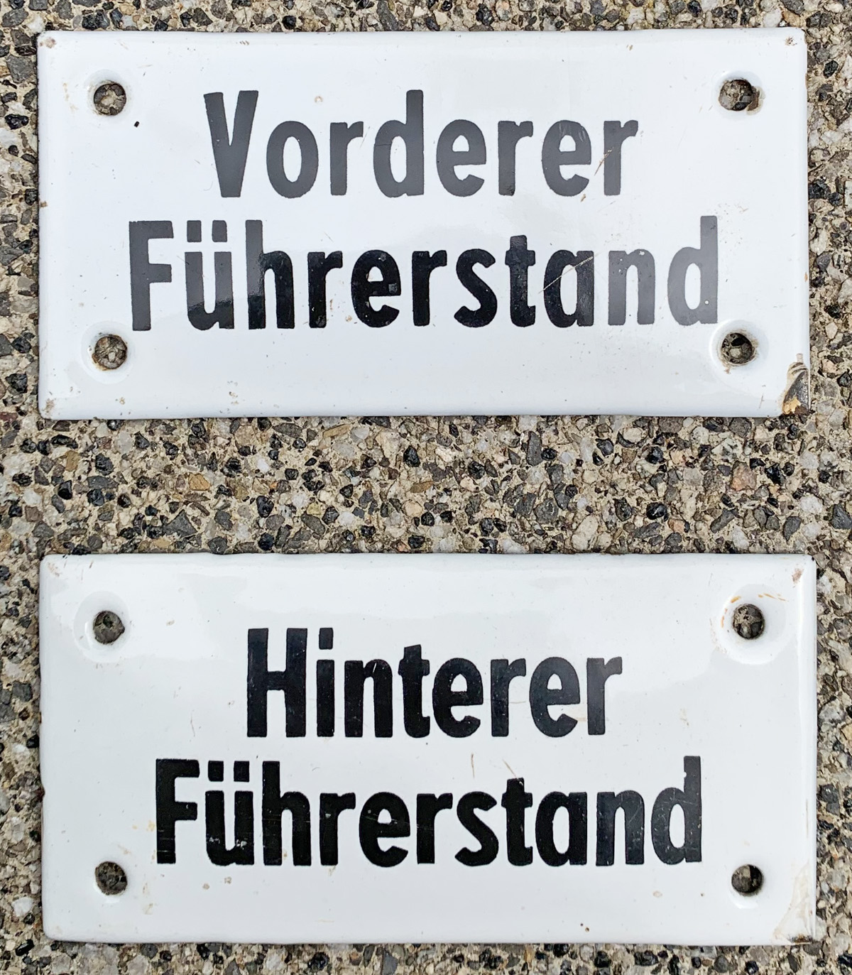 Das kleinere Schild ist vom Führerstand jenes Triebwagens. Darstellung: AEG und SSW, mittig die Umschaltung des Motors in Stern/Dreieck- Schaltung. Das große Schild gibt es auch ohne die linksseitige Siemens-Prägung. |