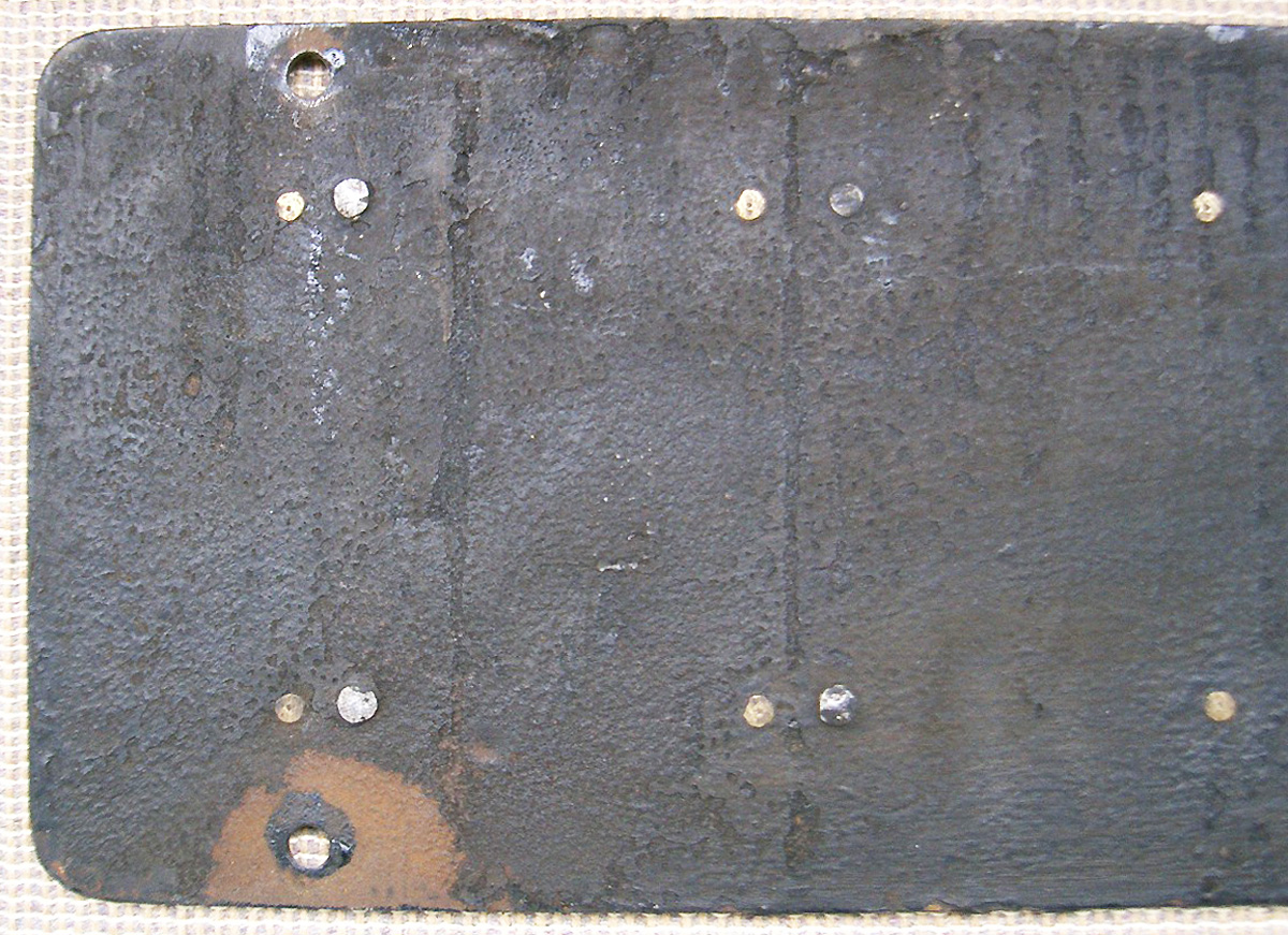 lange Nietzapfen, der Bindestrich wurde mit zwei Nietzapfen befestigt.