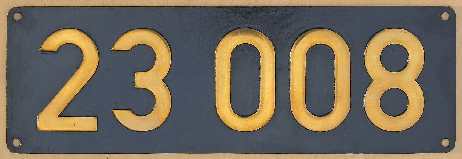 häufig zu finden bei Dampfloks, oft auch als Ersatzschilder für die 01.10 und 03.10 DRB-Gussschilder. Diese Hohlgussschilder sind nur bei den Lokomotiven der BR 01 und BR 03 bekannt. |