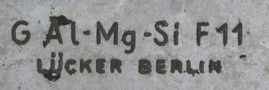 ![]() GAl-Mg-Si, von 50 647, mit Logo WLF, Fabriknummer: 3367, Baujahr: 1940 |