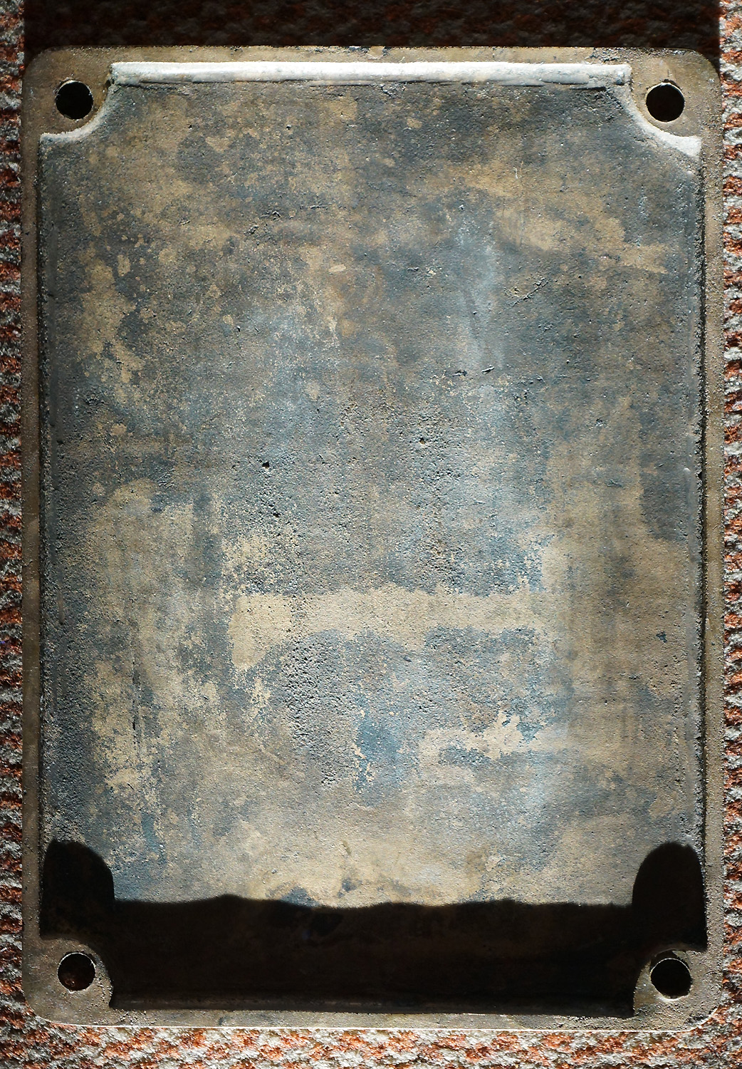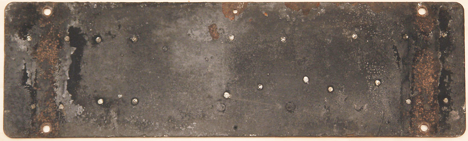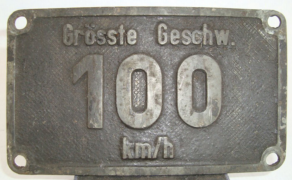 ![]() Geschwindigkeitsschild: "Groesste Geschwindigkeit 100km in der Stunde", Eisenguss mit Rand. Rückseite |