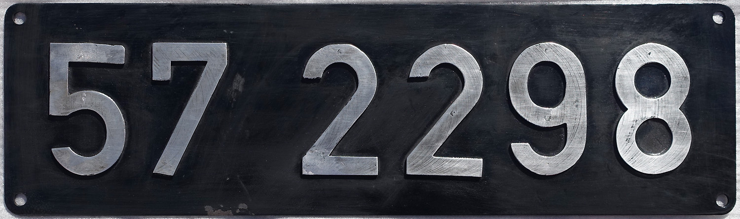 ![]() 56 102 der Osthannoverschen Eisenbahn (OHE). Ehemalige 56 169 der DRB. Ausführung: GAlS-He (Henschelguss). Sämtliche 1946 von der DRw an die OHE verkauften 56er wurden umgenummert und bekamen diese Schilder. |