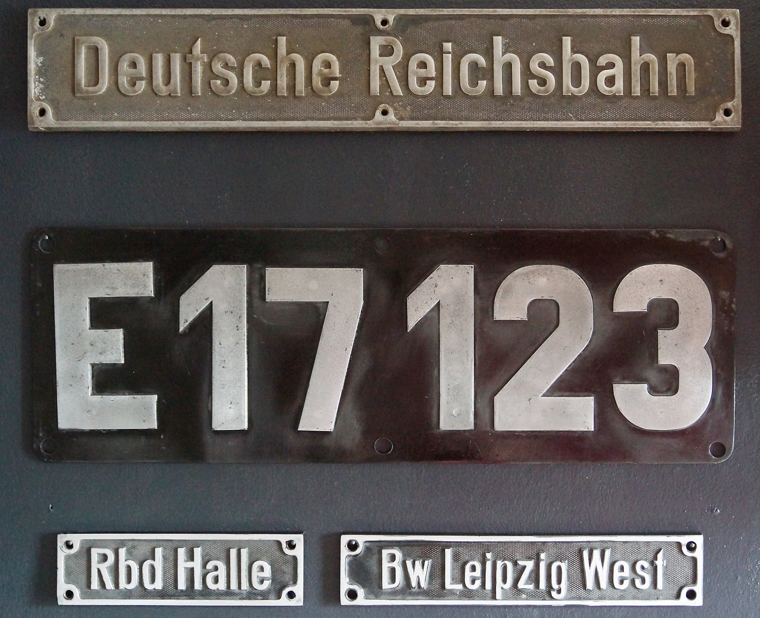 ![]() DB, E93 17 NAlR, Ersatzschild vom Aw Freimann |