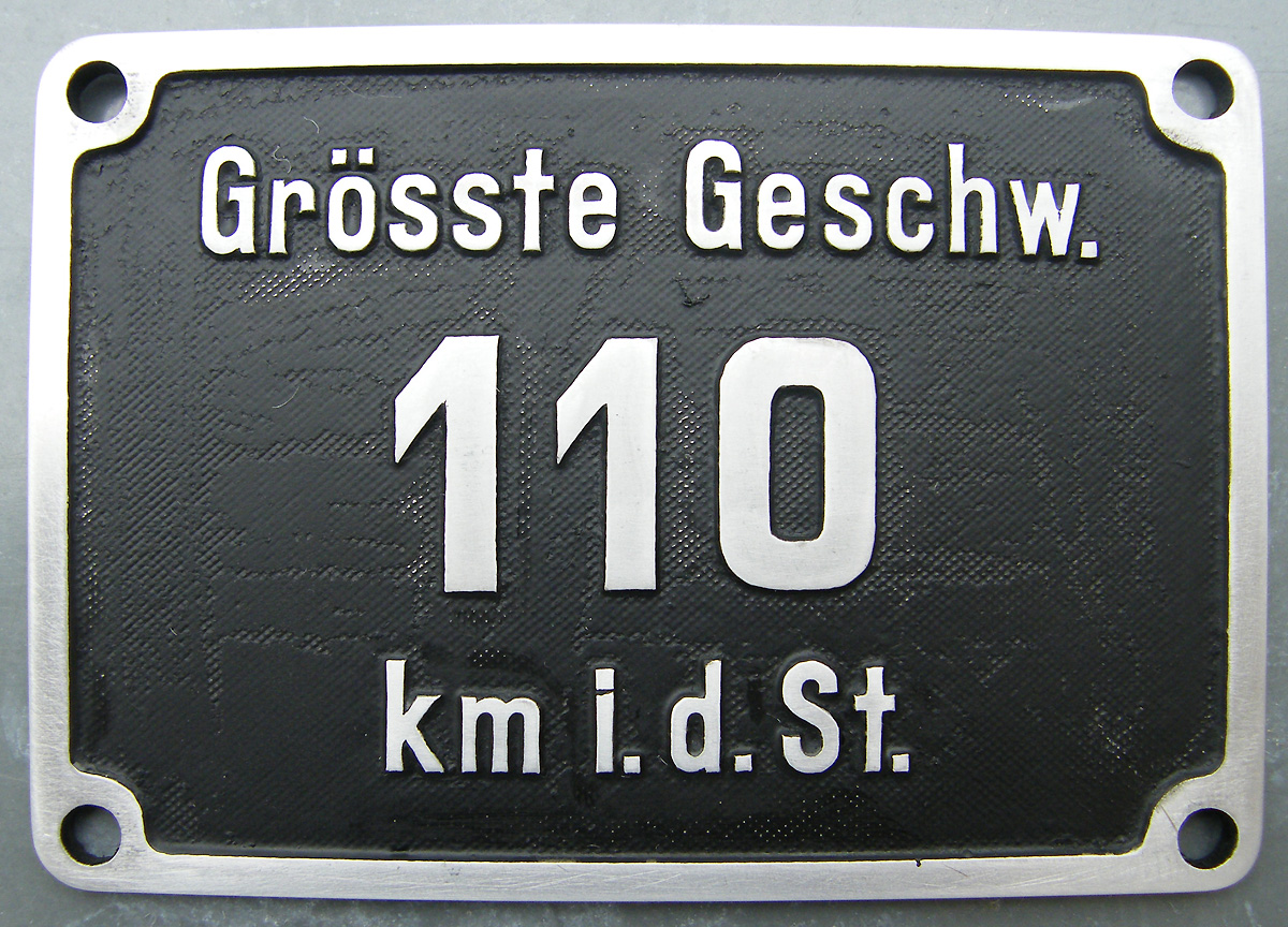 ![]() Geschwindigkeitsschild 110km, Aluminiumguss, für BR 23.10 (DRo) |