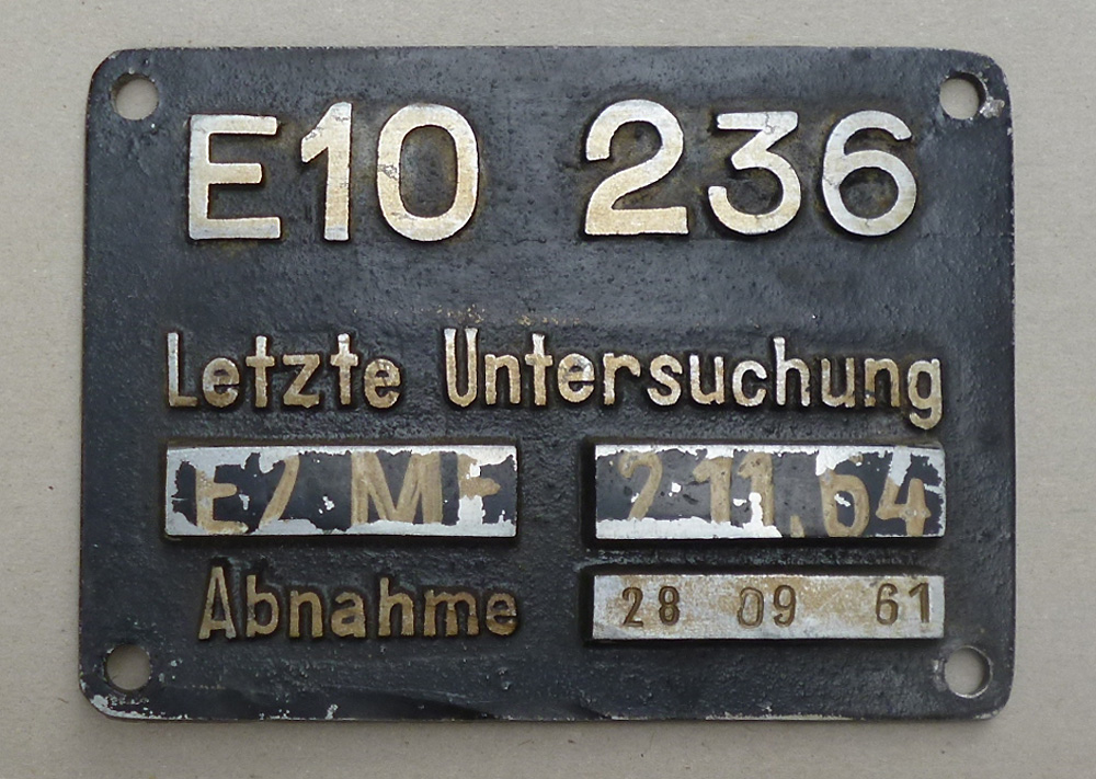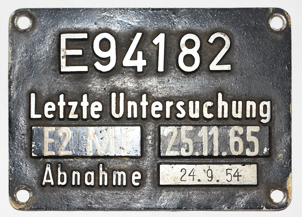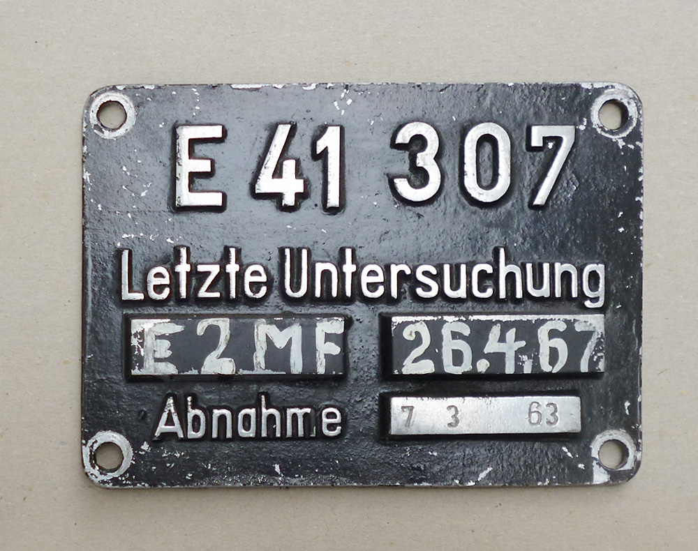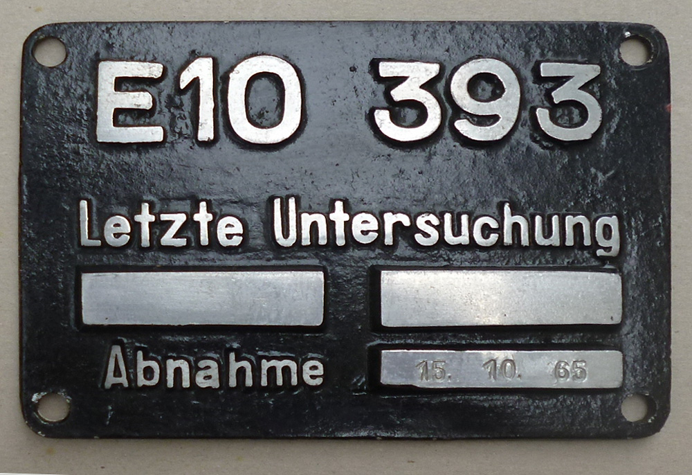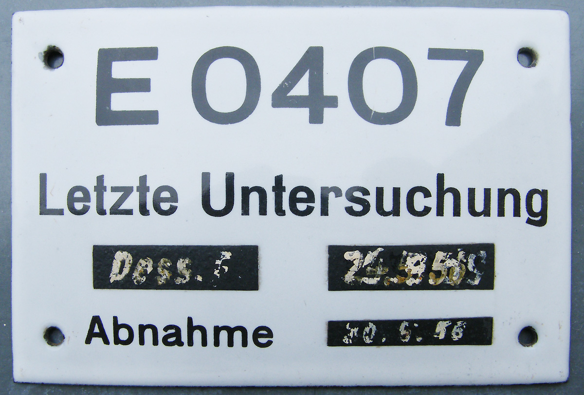 ![]() Untersuchungsschild von E04 07 Ausführung "DRo", Emaille |