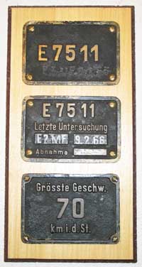 ![]() Plakette von E42 100 zur Eröffnung des elektrischen Betriebs Freiberg-Dresden. Messingguss, 295x295 mm |