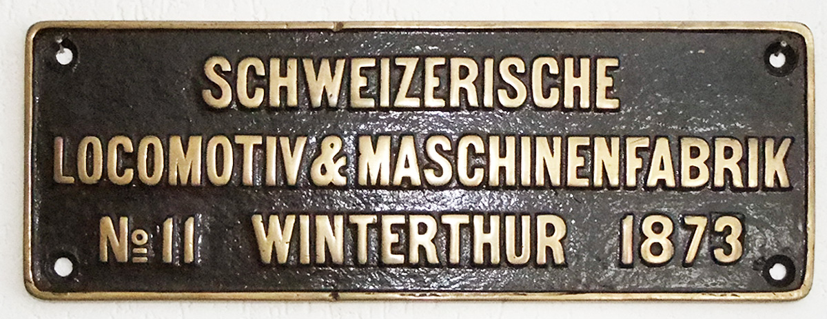 ![]() SLM Nr. 11, 1873, Messingguss mit Rand, von SCB E3/3 (Schweizerische Centralbahn) |