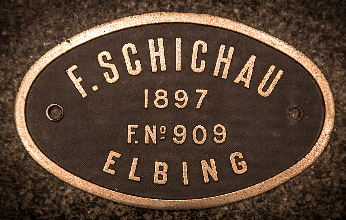 ![]() Radkasten einer 1896 gebauten Dampflokomotive, ausgeführt als Fabrikschild. Eisenguss