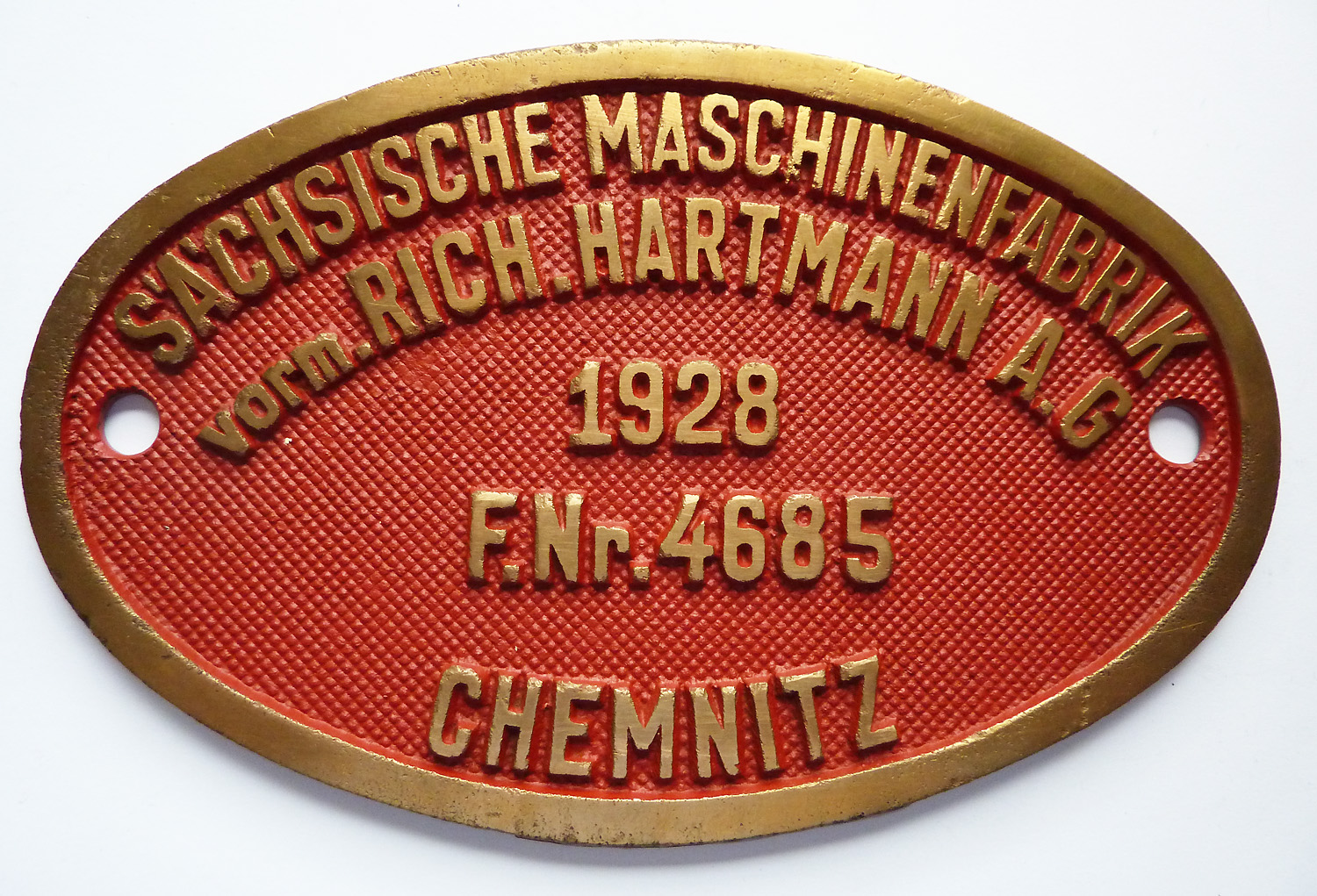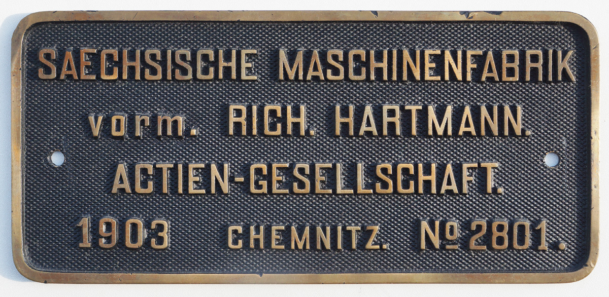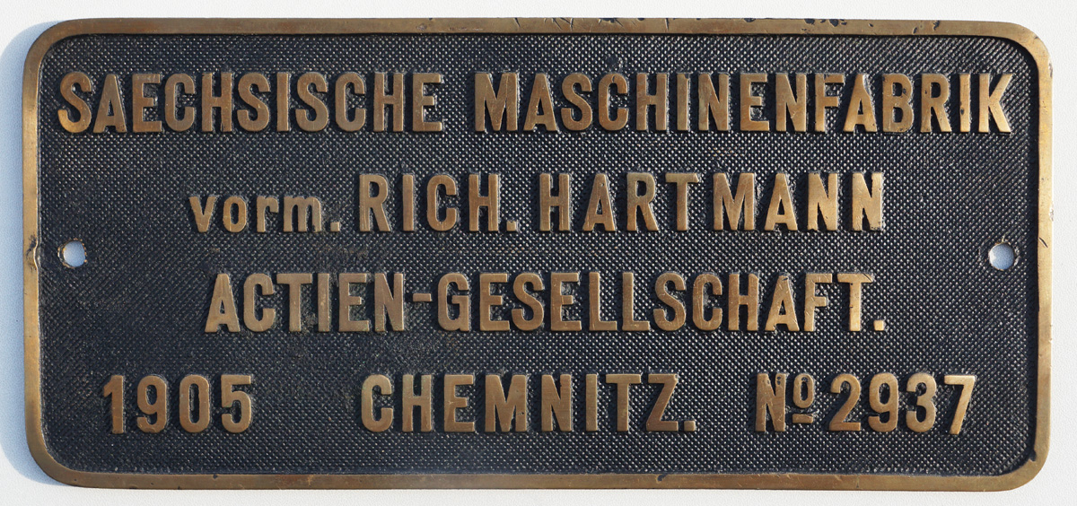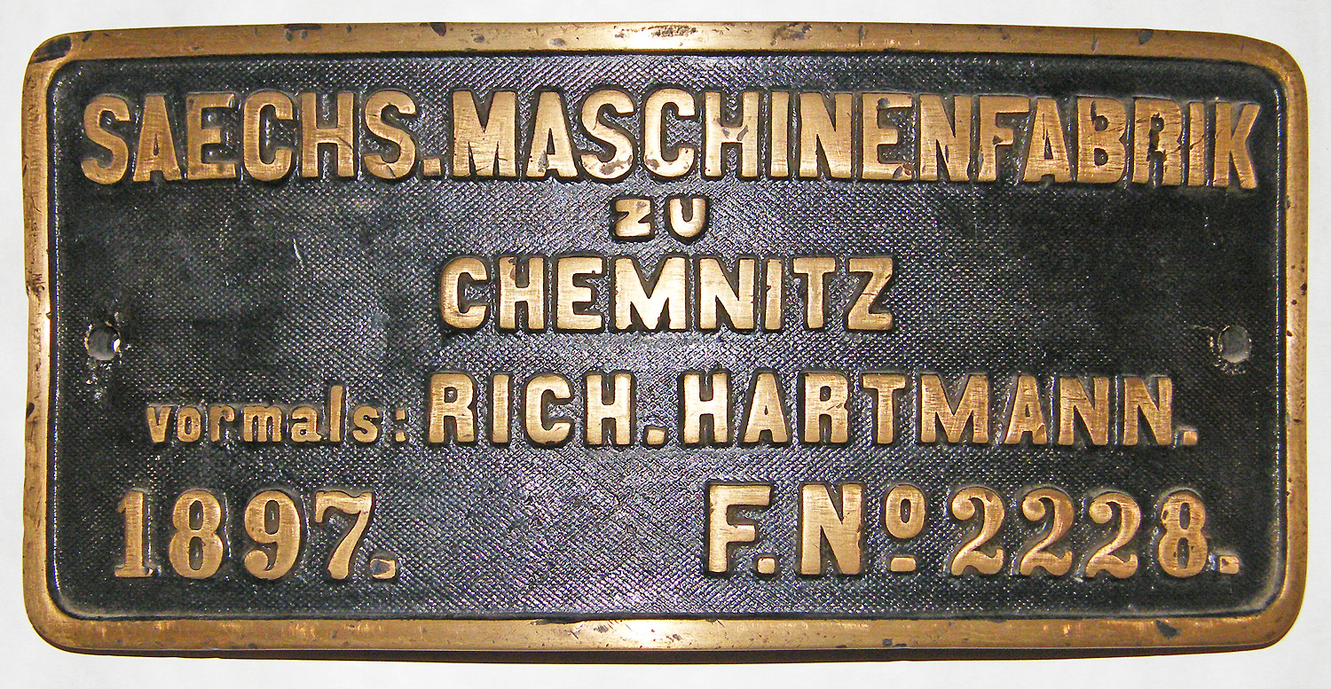 Fabrikschild Saechs. Maschinenfabrik zu Chemnitz, vormals Rich. Hartmann. |
