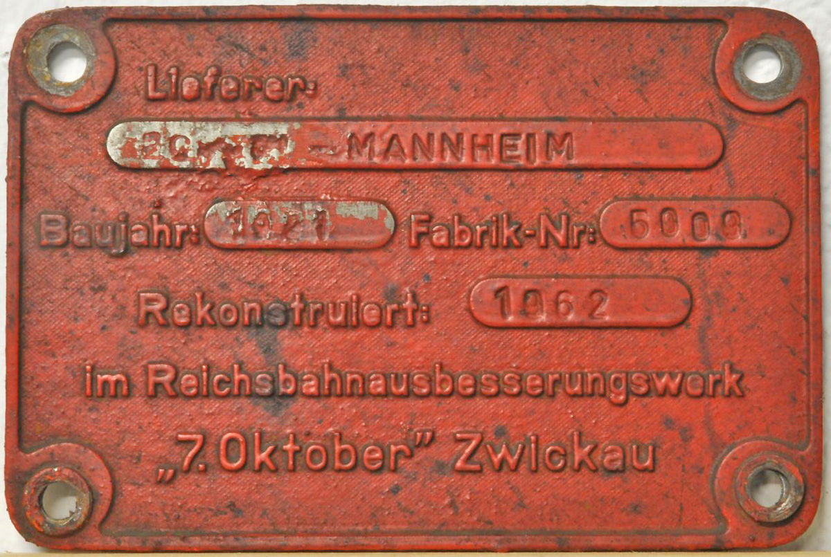 Rekoschild vom RAW Zwickau. Fabriknummer 5009, |
