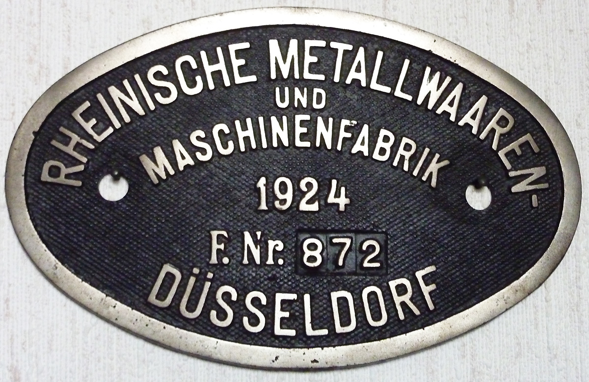 Fabrikschild Hohenzollern, Düsseldorf. Fabriknummer: 4571, |