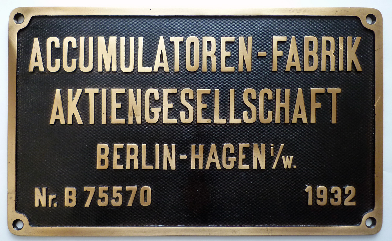 Fabrikschild Accumulatoren-Fabrik, Das Schild ist von der DRG 701 419, DB Augsburg 6200, DB 703 005-9.