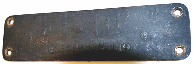 Das Original gibt es nur mit Buchstaben/Ziffern aus Alu, genietet auf eine Stahl-Platte. Das hier angebotene Schild ist aus Aluguss. Eine sagenhafte Fälschung, schön gepudert und mit allerlei Farben vorne überlackiert.