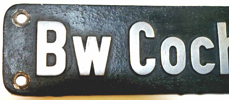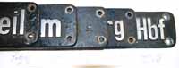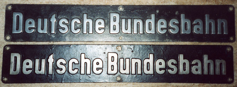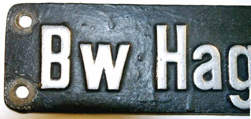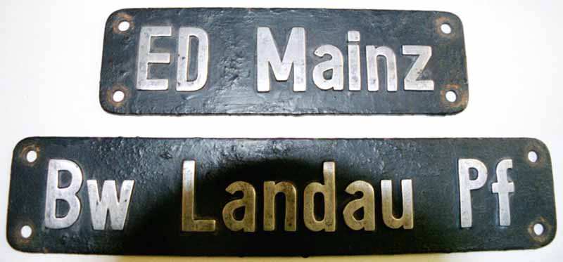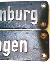 Auch steht hier selbstverständlich nichts über 'Lokschild', 'Originalschild', oder "Teil von der Eisenbahn". Einfach: 'Gußschild'. (Nach der neuen Rechtschreibung muss es 'Gussschild' heißen, doch das ist ein anderes Thema...)