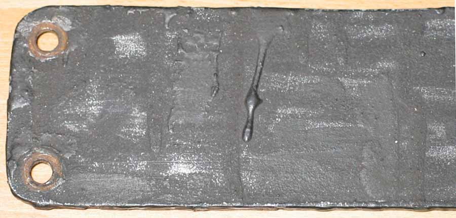 - Die optisch zunächst gut aussehende Alterung wirkt mit seinen Tropfnasen auf der Rückseite wie "mitgegossen". Die Grundplatte ist möglicherweise gegossen, was auch das Gewicht erklären könnte.