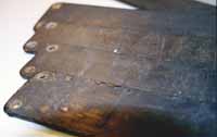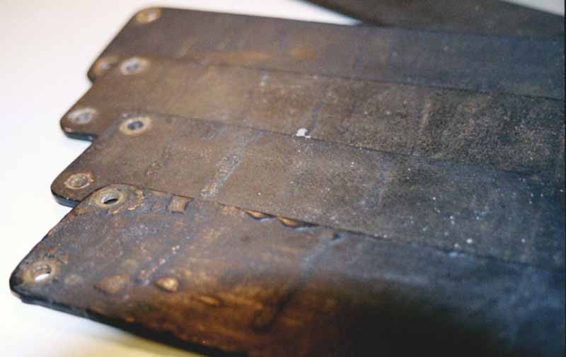 - Der Punkt als Niet war meist (nicht immer) eckig oder mit einem zusätzlichen kleinen Niet versehen, damit er sich nicht verdrehte. Hier ist er Punkt eckig mit runder Niet.