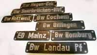 Im Herbst 2003 tauchten seltene Bw Schilder auf. Seltsamerweise immer die gleichen seltenen Bws. Verkäufer und Fälscher war Hr. Ludwig, der diese Schilder auch im Eisenbahnkurier annonciert hatte.