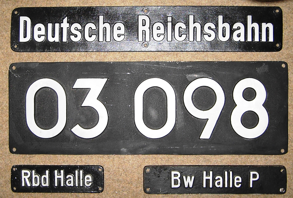 Das Schild der Museumslokomotive 03 131 wurde von einem "SEPP" gefertigt, der dieses Museumslokschild auch gekennzeichnet hat. Lebenslauf und Verbleib dieser Lokomotive unter Eisenbahn-Museumsfahrzeuge.de |